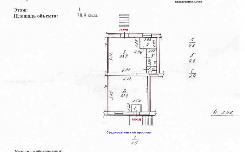 Площадь помещения: общая 78,9 м
