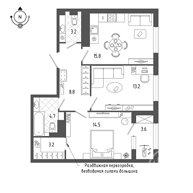 Продаётся новая светлая, уютная  2 кв( 3E) -квартира общей площадью 54,5 м2. с просторной кухней -гостиной. Квартира находится в Адмиралтейском районе Санкт-Петербурга. Квартира в малоэтажном доме бизнес-класса расположена юлизко к центру. 5 минут  пешком до метро Балтийская, 15 минут до метро Фрунзенская,  вечером можно прогуляться до Мариинского театра, а так же вдоль  Фонтанки и Обводного канала. Жилой комплекс находится под круглосуточным видеонаблюдением и имеет собственный зеленый парк во дворе. Предусмотрен подземный паркинг со станциями для зарядки электромобилей . В квартире 2 санузла по 4,6м2+ 4,6 м2 Кухня-гостиная 20,0 м2.; Прихожая 6,8 м2. Три балкона, что дает возможность увеличение света в квартире. Предусмотрено зонирование кухни и гостиной комнаты. Высокие потолки 3м2, окна в пол. Окна во двор. Квартира с ПОДЧИСТОВОЙ отделкой White box (предчистовая отделка) - выполнены все черновые работы, что сэкономит ваше время и деньги на ремонт. В жилом комплексе , в  каждой квартире предусмотрены специальные корзины под кондиционеры на фасаде дома. Инфраструктура развита, поблизости расположены школы, детские сады, магазины, кафе, салоны красоты, медицинские учреждения.  В пешей доступности Мариинский театр, Польский сад, набережная реки Фонтанки и Обводного канала. Доступ в парадные осуществляется с помощью распознавания лиц IP-домофоном или ключ-картой. На территории ЖК функционирует лицей с бассейном . Здание было отреставрировано, ранее в нем находилось кавалерийское  училище , в котором учился М.Ю Лермонтов. Современный дом с фасадами из темного клинкерного кирпича, просторными лобби и бесшумными лифтами, вход в парадную по системе распознавания лиц сделает Вашу жизнь намного комфортнее. Квартира готова к продаже, возможна ипотека, в том числе и семейная.   Не упустите свой шанс! Звоните, ждем Вас на просмотр!