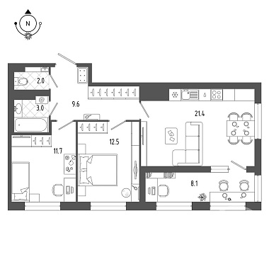 21.4 м2
