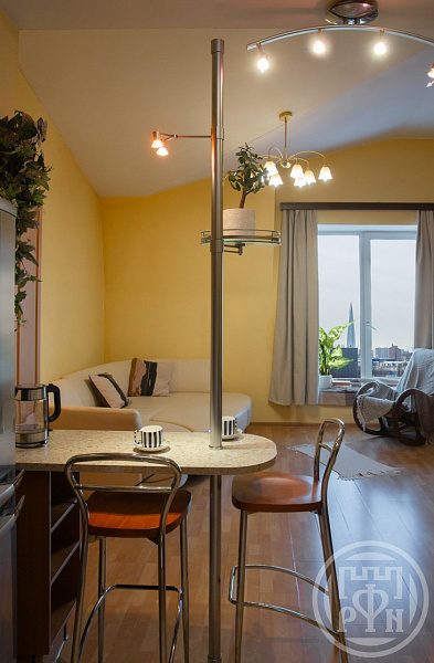 Квартира расположена на 4-м мансардном этаже.
