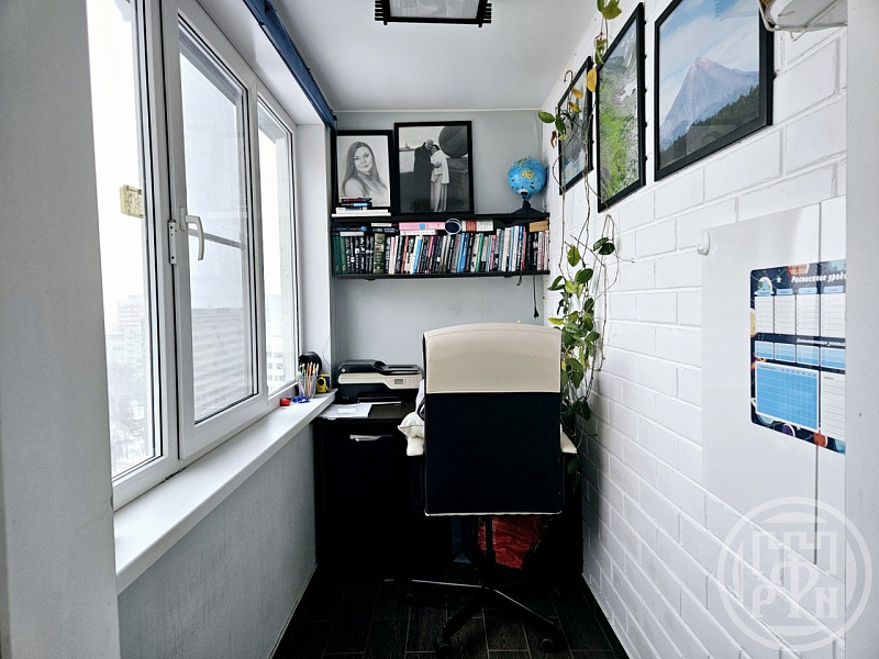 Из кухни есть выход на застекленную лоджию. Всего в квартире две застекленные лоджии размером 2 квм. На вторую лоджию выход из спальни.