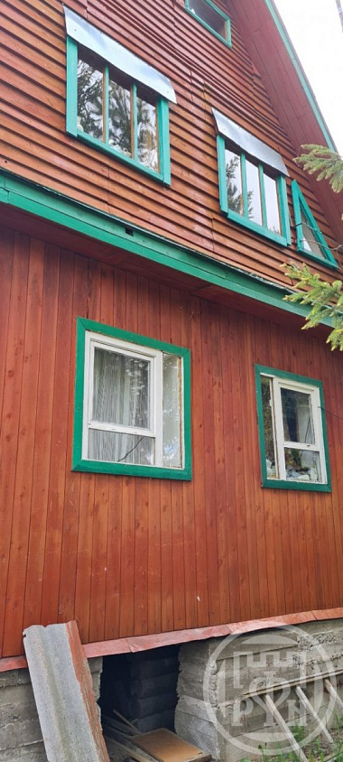 В небольшом уютном СНТ Акустика Выборгского р-она Ленинградской области новое предложение — зимний двухэтажный дом из бруса 1998 г.п.площадью 143 кв.м. Есть высокий цокольный этаж, состоящий из двух просторных помещений, используемых под мастерскую и складское помещение. На 1 этаже располагаются: веранда — столовая  14 кв.м., 2 комнаты 20 кв.м. и 14 кв.м, кухня -8м. На 2 этаже общее помещение свободной планировки площадью 40 кв.м. Эл-во 10 кВт, колодец (3 кольца) с хорошей питьевой водой, центральный летний водопровод, туалет на улице. Участок составляет 6 соток, расположен на землях сельскохозяйственного назначения для ведения садоводства, новая система межевания координат. Высокий, сухой, в окружении сосен и пушистых елочек. Огорожен, сделаны ворота, въезд. На участке добротная брусовая баня 2008 г.п., состоящая из просторной светлой веранды, кухни, душевой и комнаты отдыха.  Дом располагается в уникальном по своему местоположению месту. Лес, богатый грибами и ягодами, оз. Лебяжье — 15 минут пешком, ж/д станция Горьковское 25 минут пешком. СНТ охраняемое, до автобусной остановки в 1,8 км, сетевой магазин Магнит в 2 км.