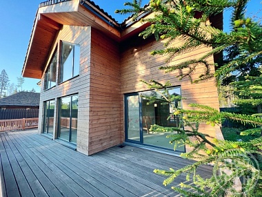 Предлагается к продаже замечательный дом для большой семьи. В доме четыре полноценные спальни, с возможностью сделать пятую, при необходимости(одна на первом этаже, три на втором), просторная кухня-гостиная 60 метров, с панорамным остеклением и вторым светом-из окон открывается очень красивый вид на участок, на каждом этаже свой санузел. В доме сделана качественная отделка с использованием дорогих современных материалов. На полу первого этажа уложен  кварцвинил французской елочкой, на втором этаже ламинат высокого класса,  стены во всем доме из 180 бруса с выборкой и окраской на производстве, в санузлах керамогранит 120*60 с центровкой от центра и углами под 45 градусов, установлена хорошая сантехника, смесители с термостатами, электрический теплый пол на полу и стенах (для полотенец). Кухня выполнена на заказ компанией Европлак, установлена встроенная бытовая техника Bosch (духовой шкаф, варочная индукционная поверхность, холодильник, посудомоечная машина, СВЧ, вытяжка). Лестница из массива дерева в цвет пола, со стеклянным ограждением. Дом подключен ко всем коммуникациям: магистральный газ(отопление от котла), канализация септик, скважина на участке, электричество 15 кВт. Шикарнейший земельный участок с красивыми елками и соснами, утопающими в солнечных лучах. Посёлок находится под круглосуточной охраной, на въезде пропускная система. На территории есть магазин, спортивная и детская площадки, зоны для отдыха и прогулок. Дом и земельный участок оформлены в собственность.