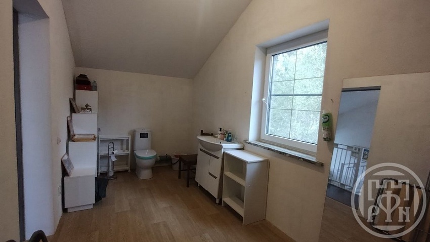 На втором этаже находятся две просторные спальни с мансардными окнами и холл. При желании здесь можно оборудовать ещё одну спальную комнату. Ванная комната просторная и оборудована окном.