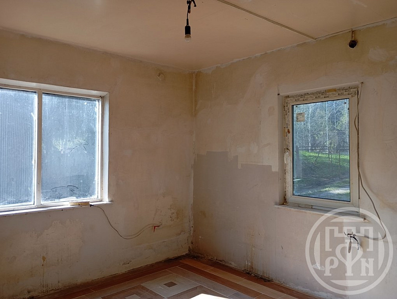 На участке 12 соток расположено 2 дома . Основной 112 кв. м.- недострой 90% под чистовую отделку. Все помещения разграничены - 4 спальни, гостиная, помещение под с/у, лестница между этажами, осталась отделка.