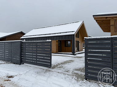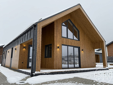 Предлагаем Вашему вниманию новый дом Фахверк в коттеджном поселке Русская усадьба. Ленинградская обл., Гатчинский район, д. Покровская Высота свесов 2,5 м. Высота под конёк 4,2 м. Дом имеет удачную планировку и грамотное зонирование: 2 входа в дом, большая кухня-гостиная, санузел, две спальни. Дом очень светлый и легкий за благодаря панорамному остеклению во всех комнатах. Дом построен по современной технологии с использованием опорно-балочной системы строительства. Фундамент - винтовые сваи. Фасады отделаны штукатуркой. Кровля фальцевая глянцевая. Стены из клееного бруса Премиум-качества Утепление пола и крыши - РIR Утепление стен - РIR с дополнительной звукоизоляцией Стеклопакеты двухкамерные противоударные низкоэмиссионные Guаrdiаn Glаss, заполненные аргоном. Выполнена дополнительная закалка и тонировка silvеr всего панорамного остекления на заводе. Внутри дома выполнена дизайнерская отделка «бизнес» с использованием материалов премиум качества. На полу - широкоформатный керамогранит, натяжные потолки, стены поклеяны обоями под покраску, в комнатах предусмотрено несколько сценариев света. Теплые водяные полы во всех комнатах. Дом отапливается электрическим котлом на 12 кВт. Электричество 15 кВт, с возможностью увеличения. В 0,8 км от КП течет река Чёрная речка. Рядом нет промышленных предприятий, свалок ТБО и мусоросжигательных заводов. В Вашем распоряжении близлежащие парки: Екатерининский, Александровский, Павловский и Мариенталь. В поселке имеется детская площадка. Дороги из асфальтированной крошки. Въезд в поселок организован через пост охраны и шлагбаум. Круглосуточное видеонаблюдение и ночное освещение улиц. В стоимость не входит участок. Есть возможность построить дом по договору подряда с использованием семейной ипотеки в этом коттеджном поселке или на Вашем участке. Также поможем выбрать подходящий именно Вам участок для Вашего будущего дома. Ждем Ваших звонков!