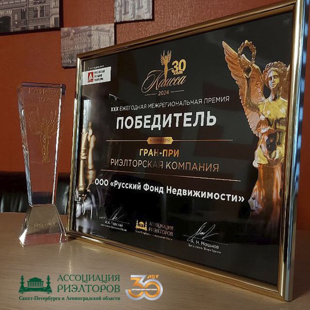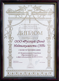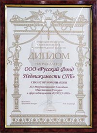 Компания "Русский Фонд Недвижимости" победила в номинации "ГРАНТ—ПРИ". Подтверждением этого стало вручение Диплома и статуэтки Каиссы.