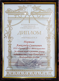 На XIX межрегиональном ежегодном конкурсе в сфере недвижимости «КАИССА-2013» премия «Представителю бизнеса за личный вклад в развитие рынка недвижимости» была присуждена генеральному директору "Русского Фонда Недвижимости" Александру Семеновичу Портнову.