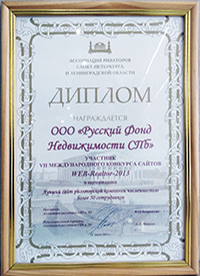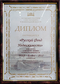 Впервые за 9 лет существования интернет-премии WEB-Realtor, победителем сразу в двух номинациях, с большим отрывом от остальных конкурсантов, стала одна компания: «Русский Фонд Недвижимости». Интернет-ресурс РФН был признан как «Лучший сайт жилой недвижимости (риэлторская компания)» и «Лучший сайт загородной недвижимости (риэлторская компания)». Такая оценка, данная не только квалифицированным жюри, но и другими участниками конкурса, говорит о высокой профессиональной работе и надежности компании.