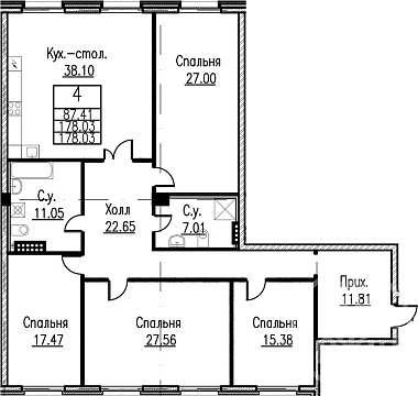 4-х комнатная квартира